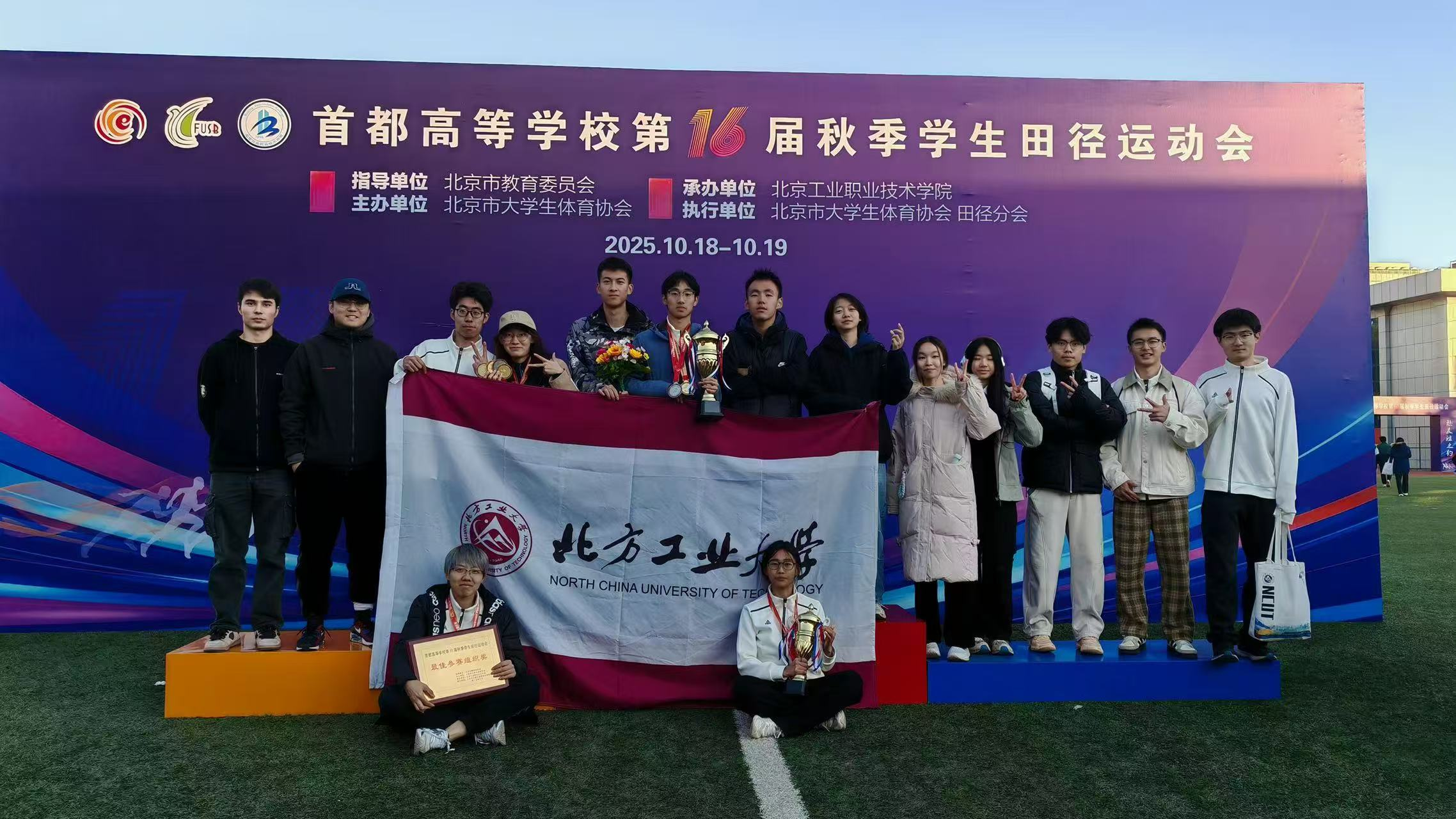10月18日至10月19日,由北京市教育委员会指导,北京市大学生体育协会主办的首都高等学校第16届秋季学生田径运动会在北京工业职业技术学院举行。我校田径队获得男子4×100米接力冠军,4×400米混合接力亚军,男女总分第四名的优异成绩;体育系教师张瑞被组委会授予最佳教练员称号。